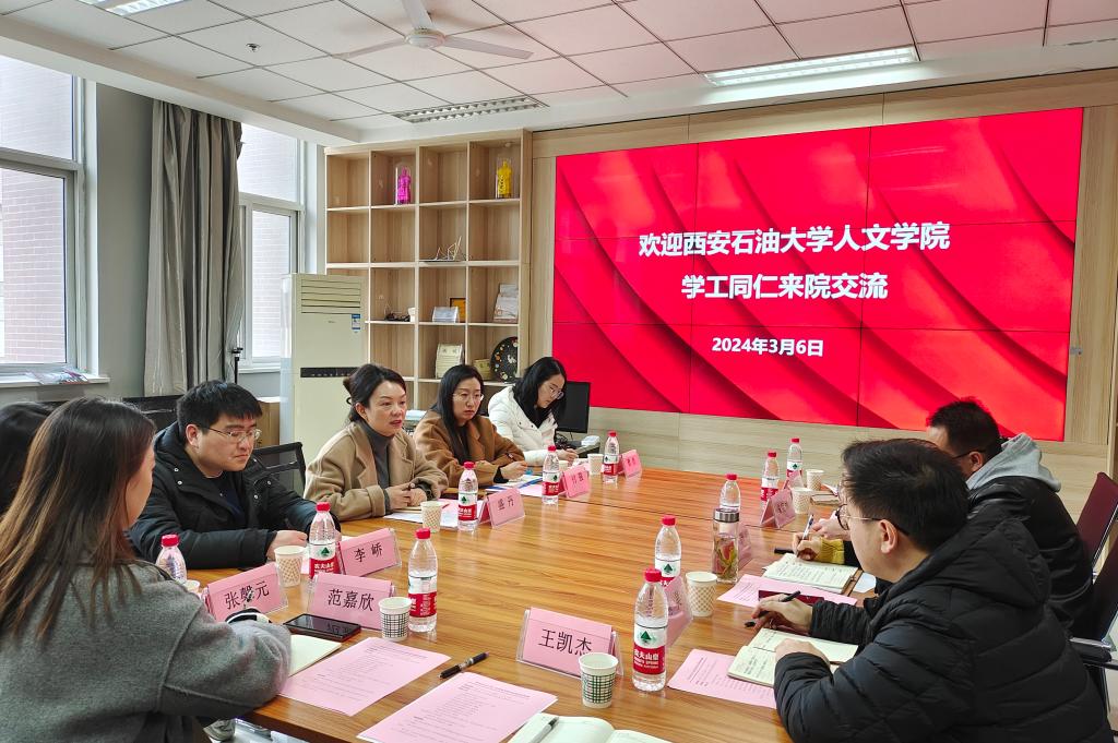 为落实william威廉中文官网第三次党代会精神,进一步提高学工干部工作能力和管理水平,更高质量开展学生教育管理,多措并举提升思想政治工作实效。3月6日,根据《william威廉中文官网人文学院学工干部访学提质计划》安排,人文学院党委副书记盛丹带领学院全体学工干部赴西北政法大学新闻传播学院、西安邮电大学数字艺术学院调研学习。
