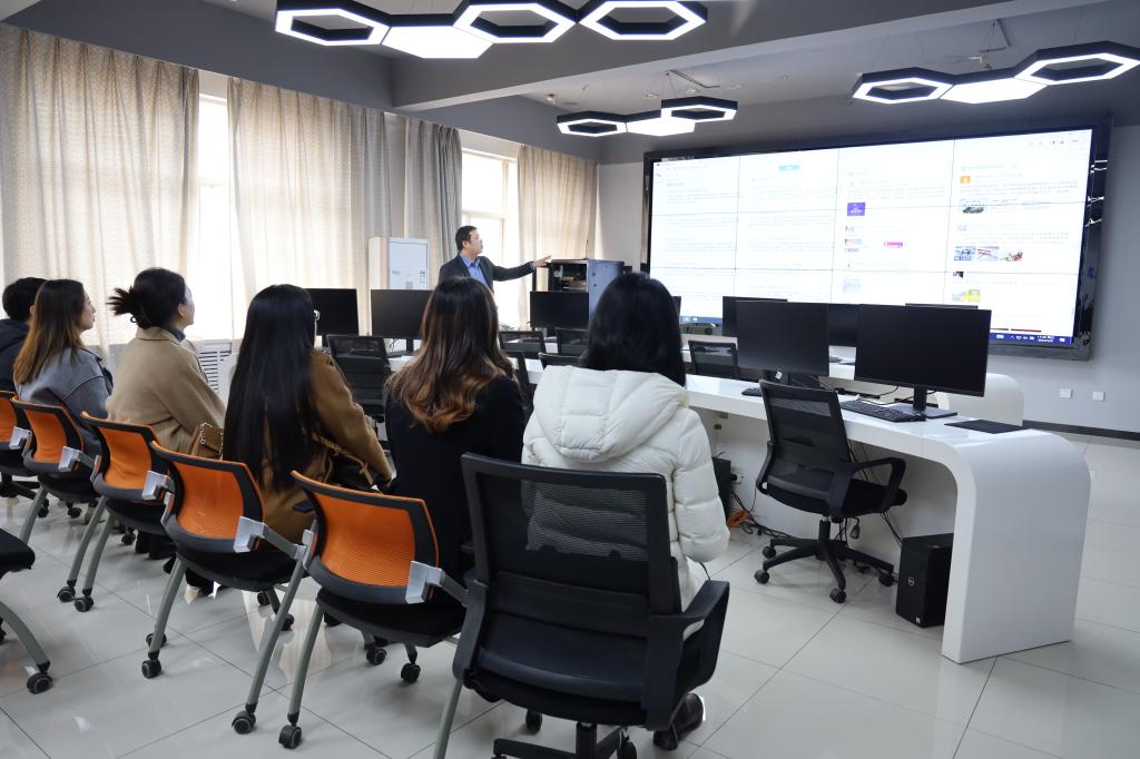 6日上午,盛丹一行在西北政法大学长安校区致知楼开展交流座谈。会上,西北政法大学新闻传播学院党委副书记、副院长秦音介绍了学院历史沿革、专业招生规模、学工队伍建设、教育教学实践等人才培养情况,分享了党员教育管理、特色学生活动、学生骨干培养、学风建设等方面的特色举措和优秀经验。盛丹对人文学院发展历程、专业设置、品牌活动等方面进行了介绍,就安全稳定、心理健康教育、毕业生就业、网络思政教育等内容交流了具体做法和经验。在互动交流环节,与会人员就学生教育管理上遇到的新问题、新挑战深入研讨,围绕学生学风建设、日常管理、一站式社区建设、网络舆情管理等积极交流分享。会后,与会人员应邀参观了新闻传播学院现代传播实验中心。