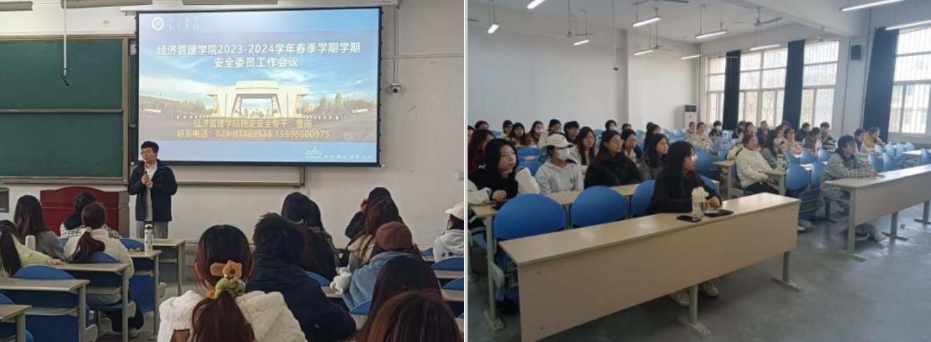 为进一步加强学生的安全防范意识,切实发挥班级安全委员作用,创建和谐稳定的校园环境,经济管理学院于3月8日在鄠邑校区博思楼101教室举办新学期班级安全委员工作会议。会议由学院稳定安全专干曹萌老师主持,各班级安全委员70余人参加了此次会议。