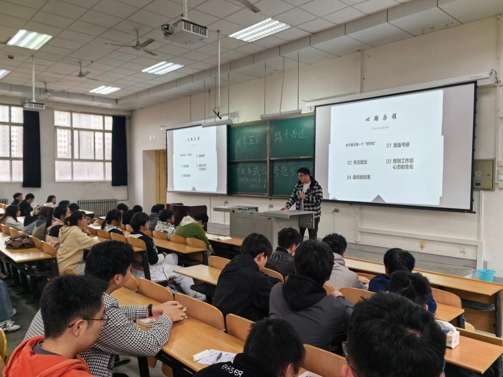 分享会上,数学2001班周椰以亲身经历为切入点,向同学们强调了机会和选择的重要性,明确指出在求职就业的过程中,要善于捕捉细节,抓住机会。同时,她还强调了选择的重要性,鼓励同学们在考研和就业过程中要做好长远规划,做出最适合自己的选择。信息2001班李栋栋希望同学们既要丰富自己的简历,也要提高自身的学业水平,既要重视考研的准备,也要关注就业市场的变化,要做好考研、就业两手抓的准备。信息2001班葛昊阳分享了自身的择业经历,希望同学们及时关注各类就业信息,积极参加各种类型的招聘会,多投简历,做自己人生的“第一责任人”。