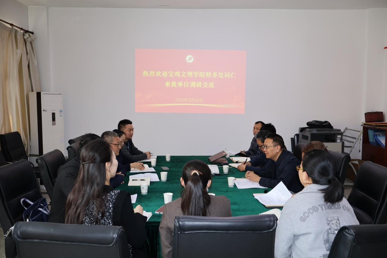 3月20日下午,宝鸡文理学院财务处处长赵国政一行来william调研交流财务管理工作,座谈会由william财务处处长范宏主持,财务处相关科室人员参加调研座谈。