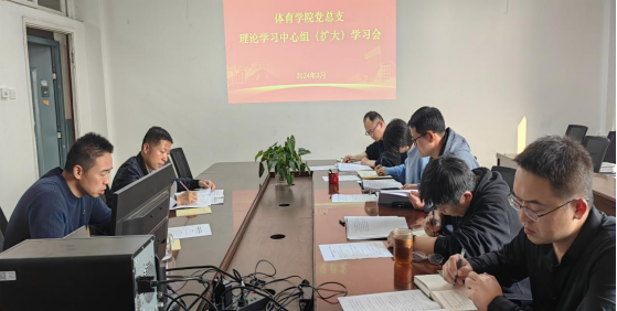 3月22日下午,体育学院党总支在雁塔校区华油能源楼733会议室召开理论学习中心组(扩大)学习会,专题学习学习贯彻习近平总书记关于意识形态工作的重要论述、习近平总书记在全国两会期间的重要讲话、2024年政府工作报告、新质生产力在教育行业中的应用等内容。学院理论学习中心组成员、教工党支部书记和各办公室主任参加会议。会议由学院党总支书记苟毅飞主持。