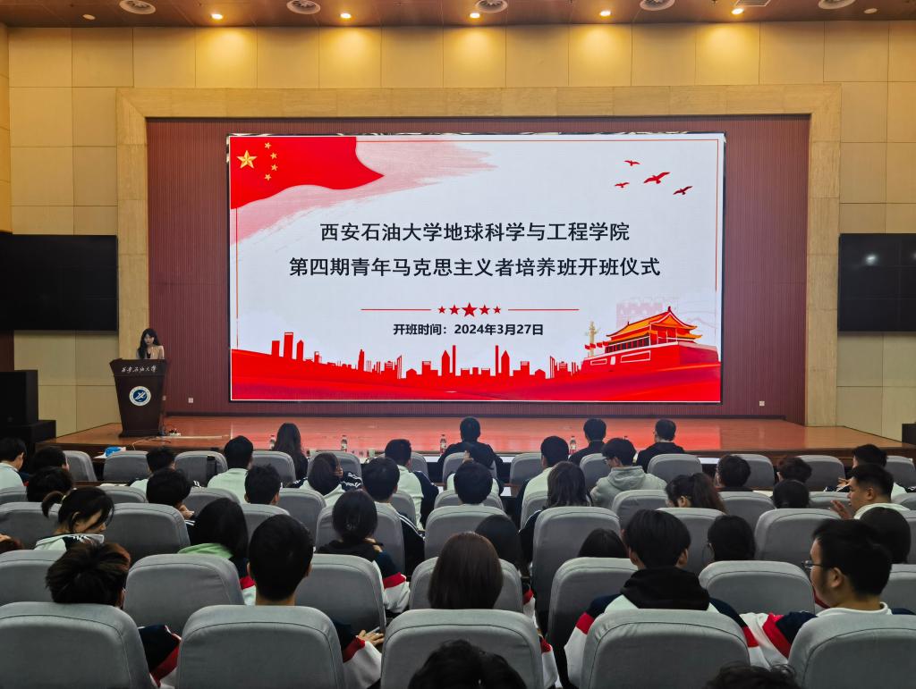 为深入学习贯彻习近平新时代中国特色社会主义思想,全面落实《关于深入实施青年马克思主义者培养工程的意见》和《青年马克思主义者培养工程管理办法(试行)》的要求,3月27日下午,地球科学与工程学院在鄠邑校区弘石报告厅举办第四期青年马克思主义者培养班开班仪式暨开班第一讲。学校团委书记何国强、学院各年级团总支书记、学院第四期青年马克思主义者培养班全体学员参加。本次开班仪式由学院团委书记姜楠主持。