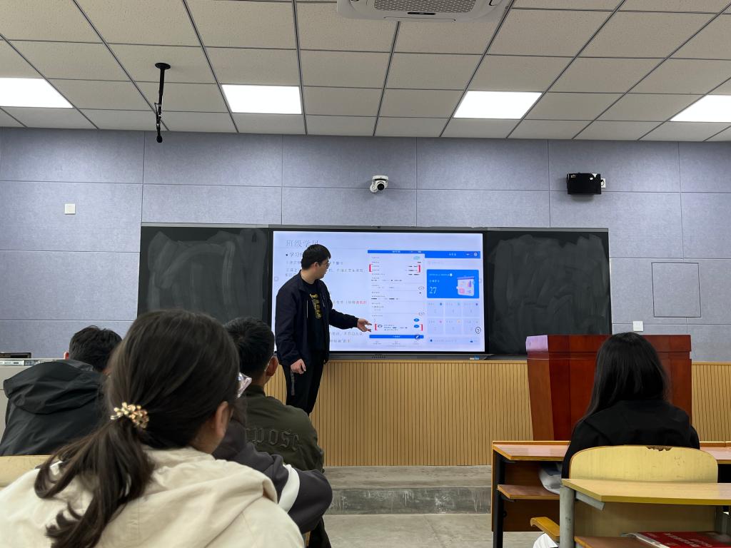 学院2023级辅导员李猛分别组织召开了2023级8个班次的主题班会。李老师结合各班级上学期期末考试成绩进行情况分析。他总结了上学期同学们在大学生活中的表现,鼓励同学们在保证学业优秀的同时积极参与课外活动,发掘自己的兴趣爱好。同时,李老师针对“污点学分”较多的同学进行学业警示,通过家校联合,朋辈互助,学科专项学习小组等方法,提高同学们学习积极性和自身学习能力。