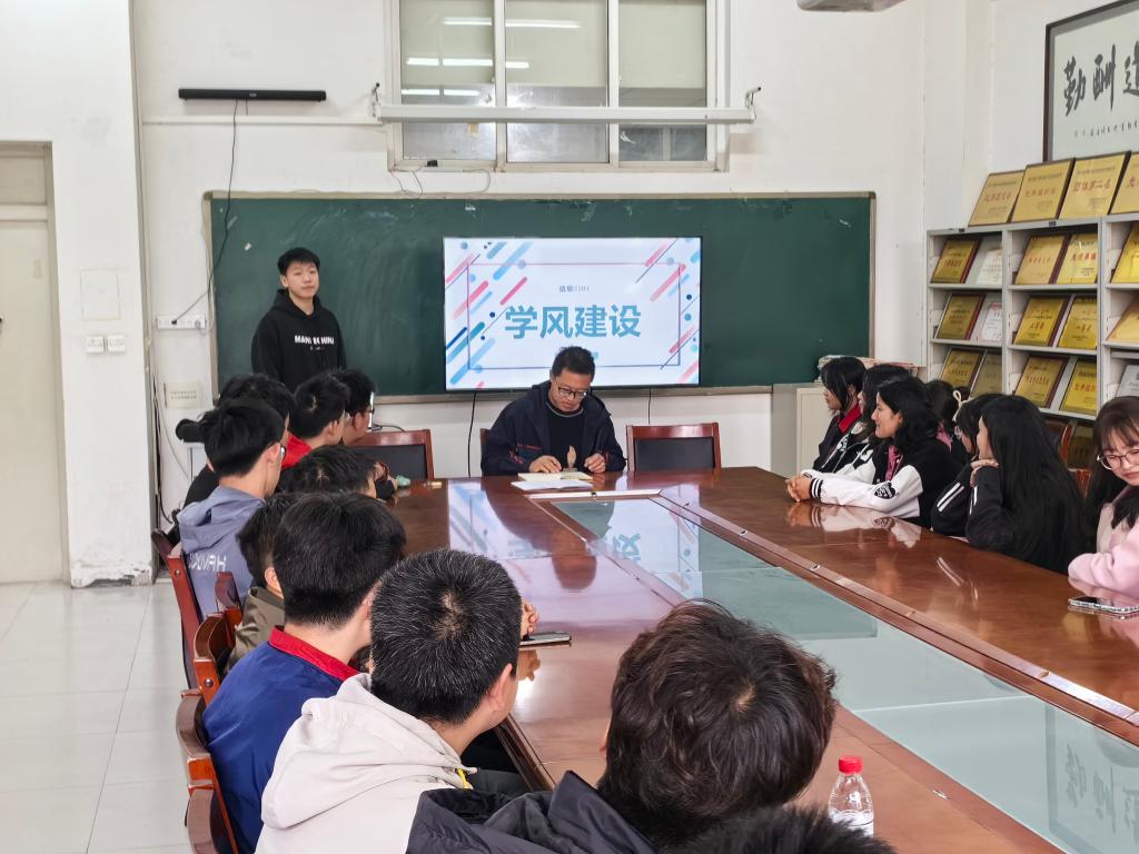 学院2022级辅导员朱彦勋分别组织召开了2022级8个班次的主题班会。针对每个班级上学期成绩情况和四六级通过情况进行了详细分析,他表扬了取得优异成绩的同学,并鼓励他们继续砥砺前行,树立自己的目标和榜样。针对成绩稍微弱一点的学生,分析他们学习中可能存在的问题。同时朱老师针对不同专业、不同班级的学习情况,为各班制定了详细的目标责任书。组织开展“一对一”帮扶,帮助学业后进生提升自己的竞争力。