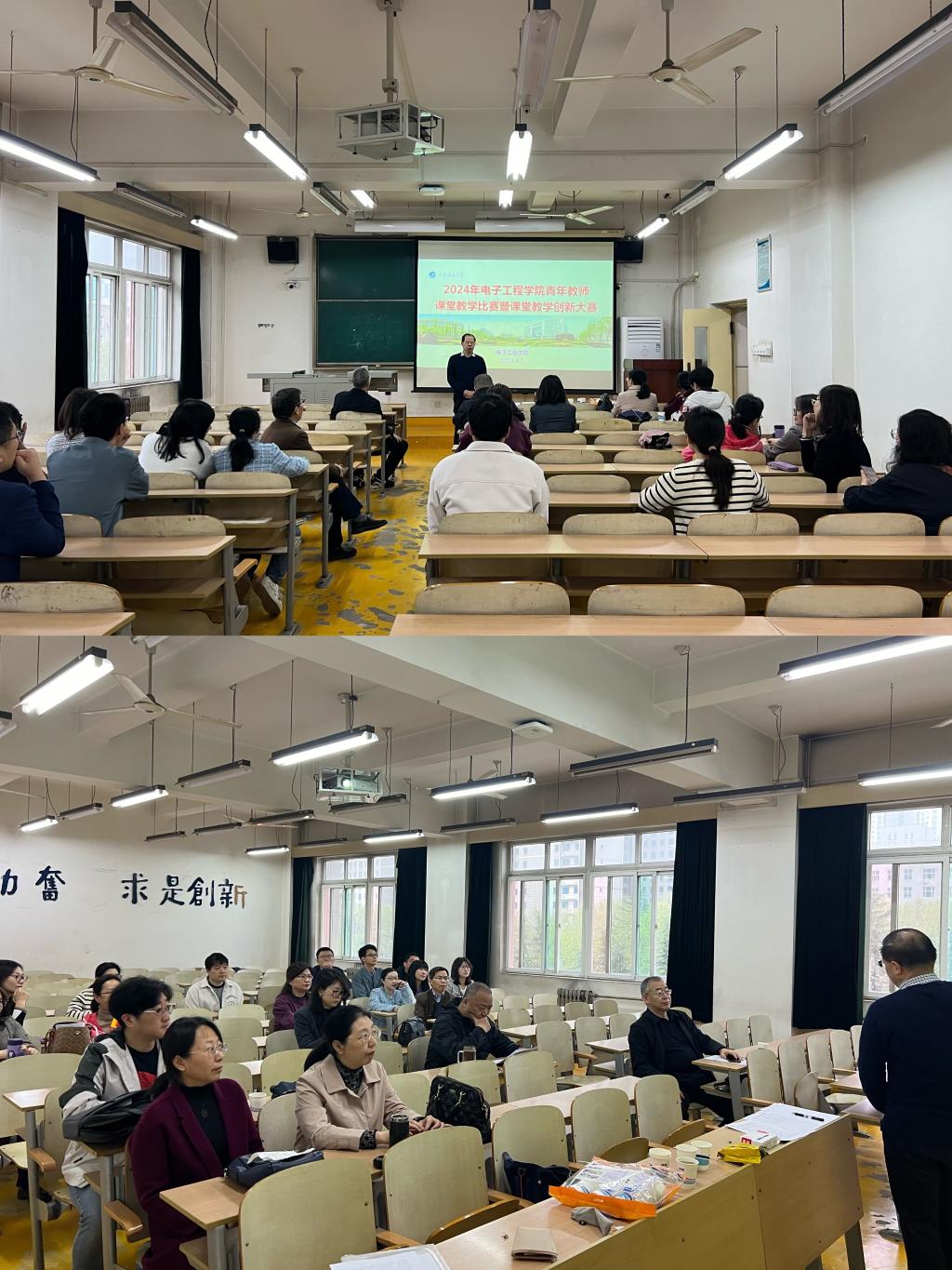 为创新课堂教学,推动课堂改革,切实提升教师教育教学能力,不断提高教学质量,迎接学校教育教学审核评估,4月2日上午,电子工程学院在雁塔校区2号教学楼504、507教室举办了2024年青年教师课堂教学比赛暨课堂教学创新大赛。本次大赛邀请陕西省教学名师、材料科学与工程学院教授周勇,陕西省教学名师、校督导专家、化学化工学院教授黄风林,土木工程学院副院长、教授崔莹,校级教学名师、电子工程学院教授张家田,电子工程学院院长、教授仵杰,校督导专家、电子工程学院教授霍爱清,校督导专家、电子工程学院副教授田亚娟,院督导专家、电子工程学院副教授刘升虎担任评委,学院党委书记潘娜、各教研室主任以及部分教师到场观摩。