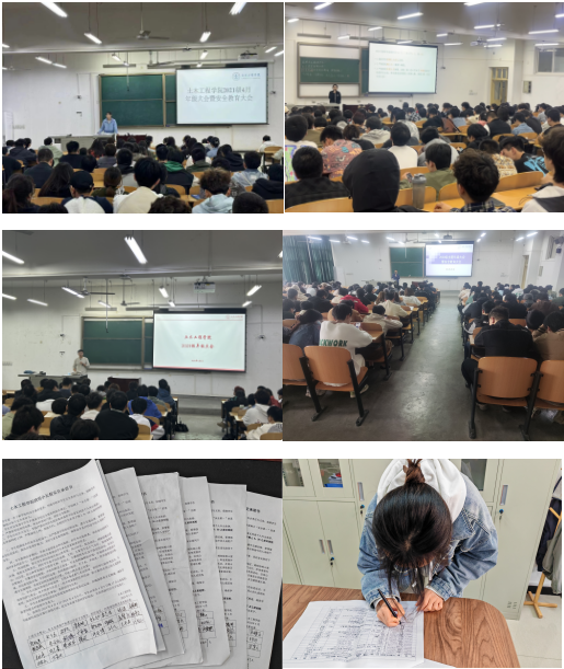 会上,各年级辅导员分别传达了学工部《关于做好2024年清明节假期有关学生教育管理工作的通知》、研工部《关于做好“清明”假期研究生教育管理工作的通知》精神,提醒全体同学们要切实提高安全意识,做到防火防盗防电信诈骗,拒绝“网贷”,远离黄赌毒,保护好自己人身和财产安全;要求同学们要树立总体国家安全观,自觉遵守国家法律法规,敢于同违法行为作斗争,遵守公共秩序,做文明网民,要正确认识自我、理解自我,做心理健康的人。全体同学签订了《土木工程学院2024年清明节假期安全承诺书》,并对同学们的假期去向做了详细统计。