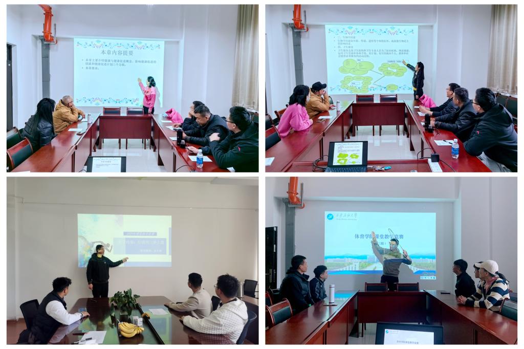 本次竞赛由体育学院教师全员参与,各教研小组分组别进行组织开展,呈现了多场次精彩纷呈的教学比拼活动。本次课堂教学竞赛以教学方法创新、教学内容设计、教学案例展示等形式展开,内容涵盖大学体育各专项(足球、篮球、排球、乒乓球、羽毛球、网球、武术、健美操、休闲体育等)项目,以及社会体育指导与管理专业理论课程(运动训练学、运动生理学、体育保健学等)内容。教学竞赛中,参赛教师通过精心准备的教学案例和生动形象的教学示范,向评委和观众展现了各自不同的教学水平和教学风采,充分展示了每位教师的教学设计能力和教学创新意识。