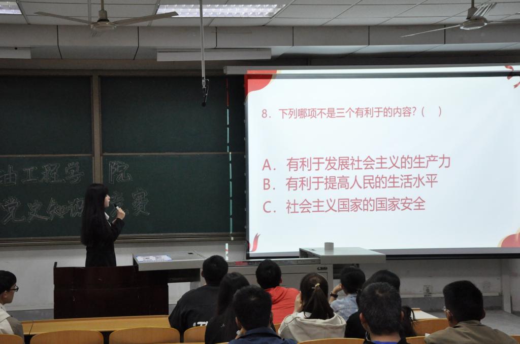 为了加强学生党员对党史知识的学习,提高同志们的政治素质和党性修养,增强队伍的凝聚力和战斗力,4月10日晚七点,石油工程学院马克思主义研习社于博思楼139举办党史知识竞赛。