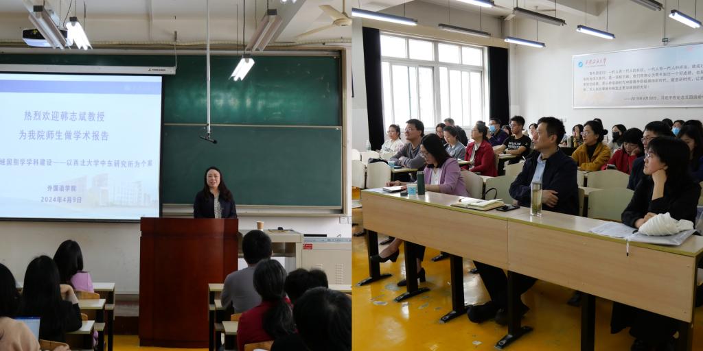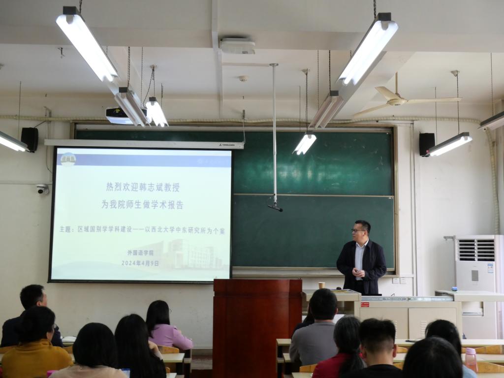 为推进william区域国别学学科建设,2024年4月9日下午,外国语学院邀请西北大学社科处处长、中东研究所所长、博士生导师韩志斌教授,在东方石油楼1104教室,做《区域国别学学科建设——以西北大学中东研究所为个案》专题报告。学院党委书记田虹霞、副院长刘辉、陈武、学院教师聆听了此次报告。报告由副院长刘辉主持。