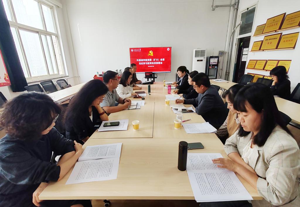 4月15日下午,外国语学院在雁塔校区华油能源楼727会议室召开党委(扩大)会议,专题研究部署党纪学习教育工作。学院班子成员、党委委员、党支部书记及科级干部参加会议。会议由学院党委书记田虹霞主持。