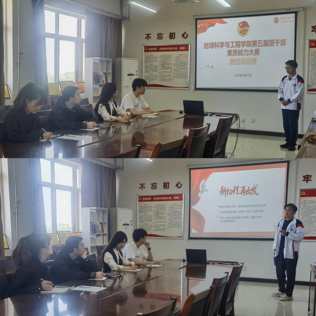 为深入学习贯彻习近平新时代中国特色社会主义思想、党的二十大精神和学校第三次党代会精神,不断提高我院团干部思想政治工作的理论水平、专业素养和工作能力,4月15日-4月17日,地球科学与工程学院团委在博思楼B106、开物楼507举办第五届团干部素质能力大赛院赛。