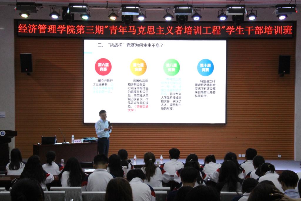 4月18日,经济管理学院第三期“青年马克思主义者培养工程”学生干部培训班第五讲在鄠邑校区崇文楼就业指导中心多功能厅举办。本次培训课由校团委书记何国强主讲,2023级学生干部150余人参加本次活动。