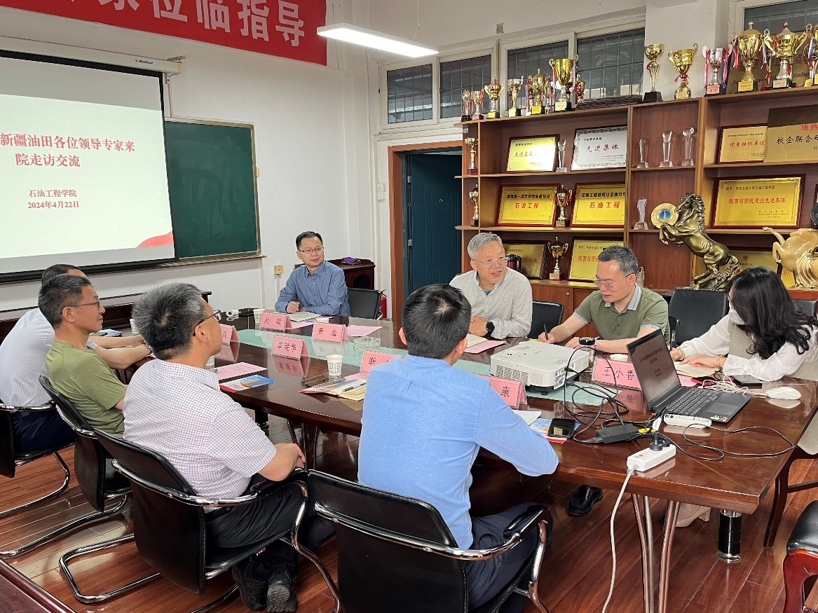 4月22日,石油工程学院在华油能源楼603会议室举行新疆油田公司走访交流座谈会。新疆油田公司实验检测研究院党委书记靳军、勘探开发研究院高级专家覃建华、勘探研究所党总支书记吴爱华、人力资源部管理科副科长陈康,石油工程学院院长黄海、党委书记司马文龙、副院长刘顺、科研与研究生办公室主任王小香和在读博士、硕士生代表等30余人参加了会议。会议由石油工程学院党委副书记张建高主持。