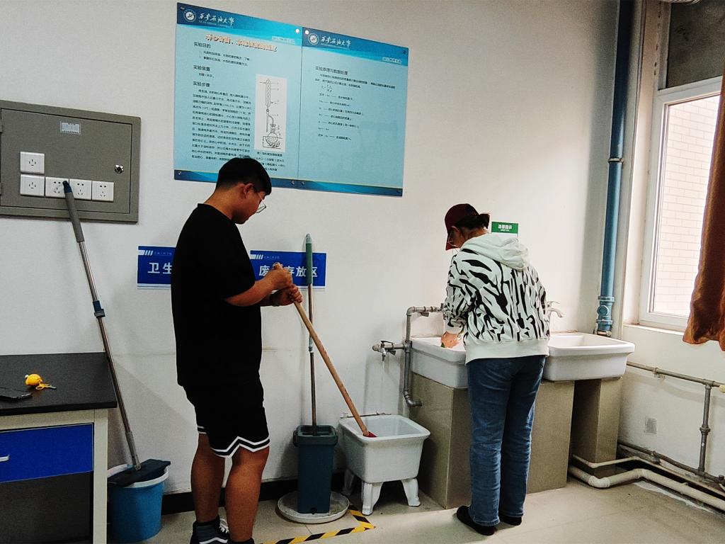 活动开始前,油藏物理实验室的彭娇老师为志愿者详细介绍学院部分实验室的功能以及相关器材的操作方式和使用目的,将教学内容与实践操作相结合,加深学生对专业知识的了解,并强调安全事项。随后,志愿者按组分工对实验室进行了全面清洁,并逐个检查卫水电安全、化学安全、设备安全,改善实验室卫生,共筑安全屏障。最后,学院资助专干秦馨雨老师进行总结讲话,对参与活动的志愿者表示感谢,并希望通过此次活动鼓励受助学生励志成长成才,反哺祖国和社会,传递正能量,充分发挥典型示范和引领作用。参与此次活动的同学获得了学院老师们的一致赞赏。