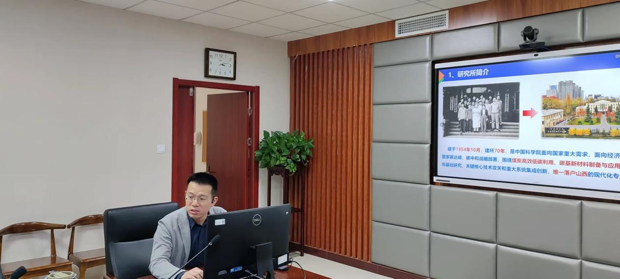 中科院山西煤化所姜东副所长、科技发展处副处长陈贺、研究生办公室主任梁萍、科技发展处主管梁辰参加此次交流会。姜东副所长致欢迎词,并介绍了煤化所基本情况和发展现状,他希望借此次来访之机,开拓双方合作空间,探索合作新模式。梁辰主管详细介绍了煤化所依托煤炭高效低碳利用全国重点实验室、煤炭间接液化国家工程研究中心、碳纤维制备技术国家工程研究中心等平台取得的科技成果。他表示山西煤化所聚焦主责主业,牢记国家战略科技力量使命要求,围绕煤炭高效低碳利用与碳基新材料研发与应用两个主攻方向,产生了一批以煤制油和碳纤维技术为代表的重大科技成果,为保障国家能源安全和国防战略安全做出了重要贡献。梁萍主任从学科建设、学科评估、导师队伍建设、研究生思想政治教育工作等方面全方位介绍了煤化所的学科和科研管理经验。