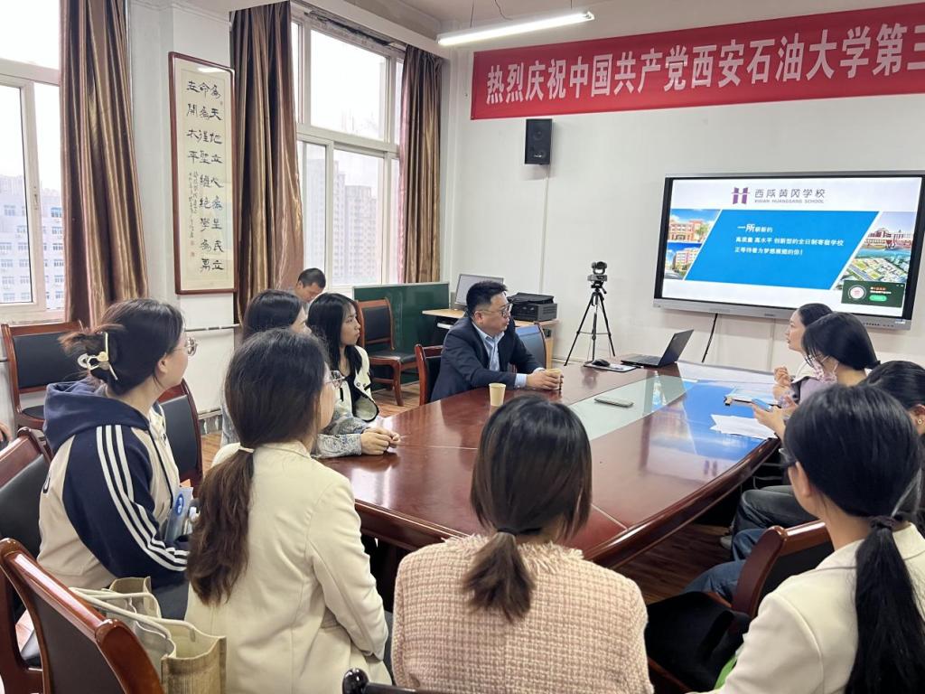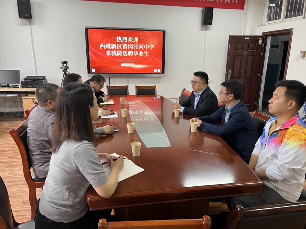 招聘会前,人文学院全体班子成员与黄冈泾河中学领导和老师,在雁塔校区华油能源楼人文学院会议室813进行了友好座谈。
