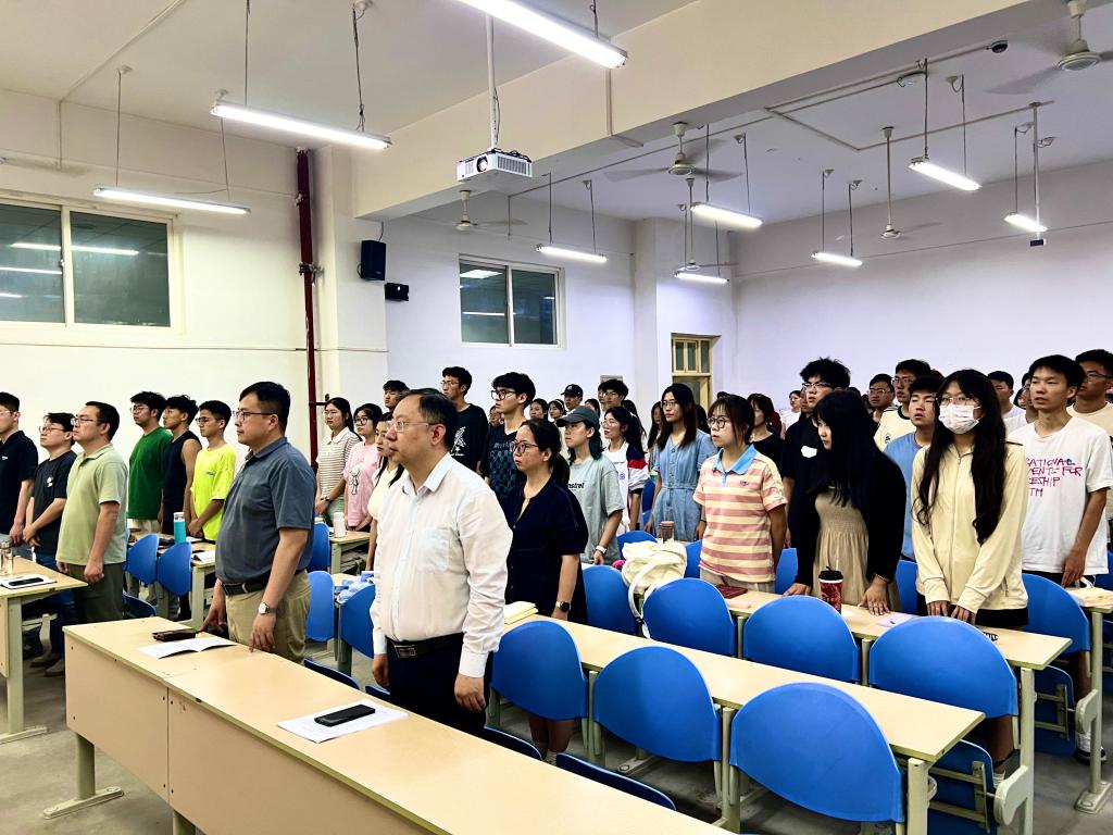 活动伊始,全体起立,在国歌声中开班仪式拉开序幕。周钰桐介绍了本次党课培训班基本情况,并宣读培训纪律条例。入党积极分子杨玉玺同学代表全体参训学生发言,承诺将严格遵守培训班纪律,认真学习党章党史,努力践行党员标准,争取早日加入中国共产党。