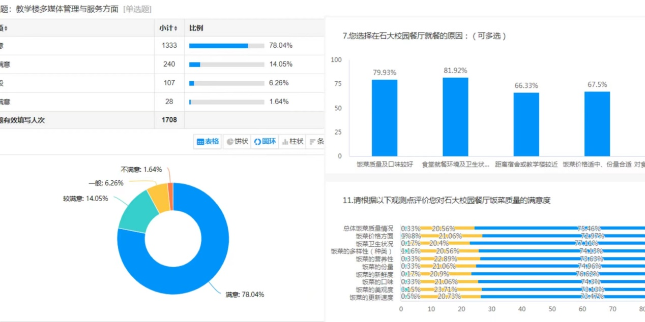 本次师生满意度调查共回收有效问卷6253份,其中餐饮服务企业问卷4013份,物业服务企业问卷2240份。通过详实的数据统计与分析,准确分析了师生的意见建议,为考核工作收集了重要的基础数据。