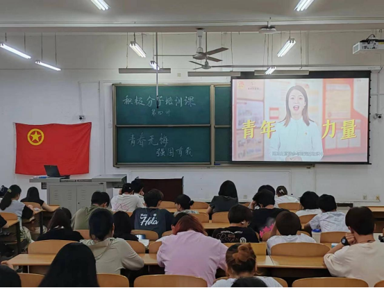 5月30日晚,全体入团积极分子在鄠邑校区博思楼B123教室观看《青春无悔 强国有我》教学视频。