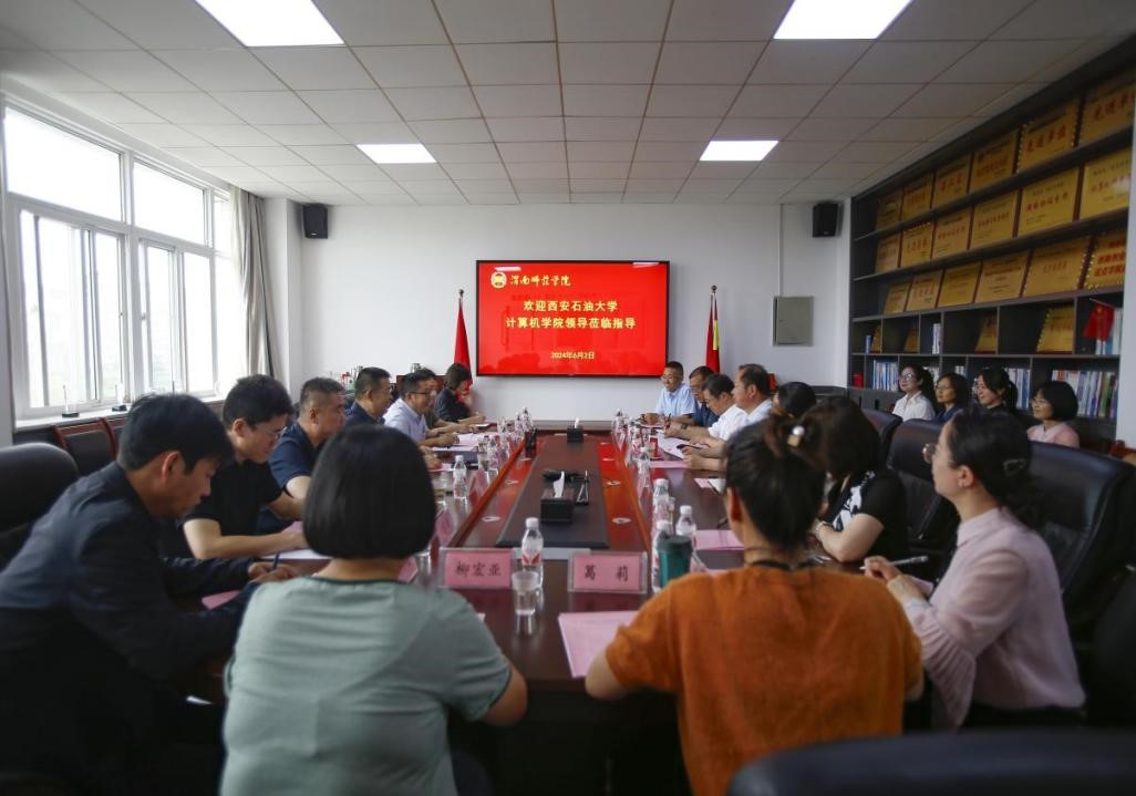 6月2日下午,计算机学院领导班子前往渭南师范学院计算机学院开展交流活动,专题调研学习党建工作省级标杆院系建设经验,并就学科建设相关工作开展交流座谈。渭南师范学院党委副书记汪勇出席,渭南师范学院计算机学院班子成员、教师代表等参加会议。
