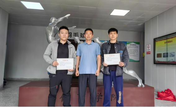 仪式上,苟毅飞书记和毕业生代表吕镇庆共同为雕塑揭幕。李寿邦院长代表学院向毕业生代表吕镇庆和张秦河颁发了捐赠证书。
