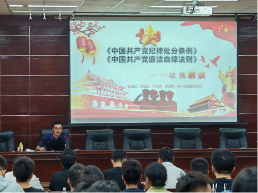 最后他对全体学生党员提出希望和要求,一是要不断提高自己对党纪的理解和认识,将党纪学习融入日常学习生活中;二是要在校学生党员严格遵守党的纪律,以严谨态度对待学业,认真负责,遵守学术规范,并积极参与校园活动,在学风建设、作风建设和宿舍文化建设中发挥模范带头作用;三毕业生党员步入工作岗位后,在工作上时刻起带头作用,履职尽责,干好本职工作,立足岗位做贡献。
