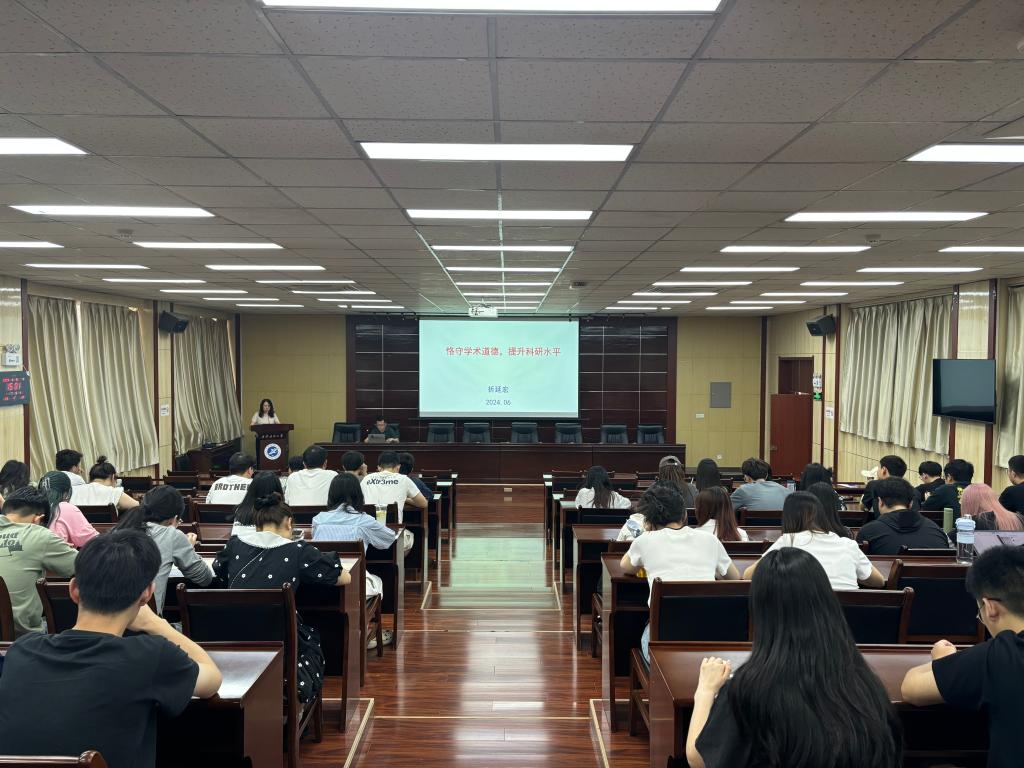 为提高研究生的学术素养,维护学术诚信,加强学风建设,根据2024年研究生学风建设主题教育暨学术月活动安排,6月6日下午,研究生工作部在雁塔校区第五会议室组织召开“恪守学术道德,提升科研水平”主题报告会,报告会邀请william理学院副院长折延宏教授主讲,研究生工作部宋亚文主持,各学院130余名研究生代表现场参加了报告会。