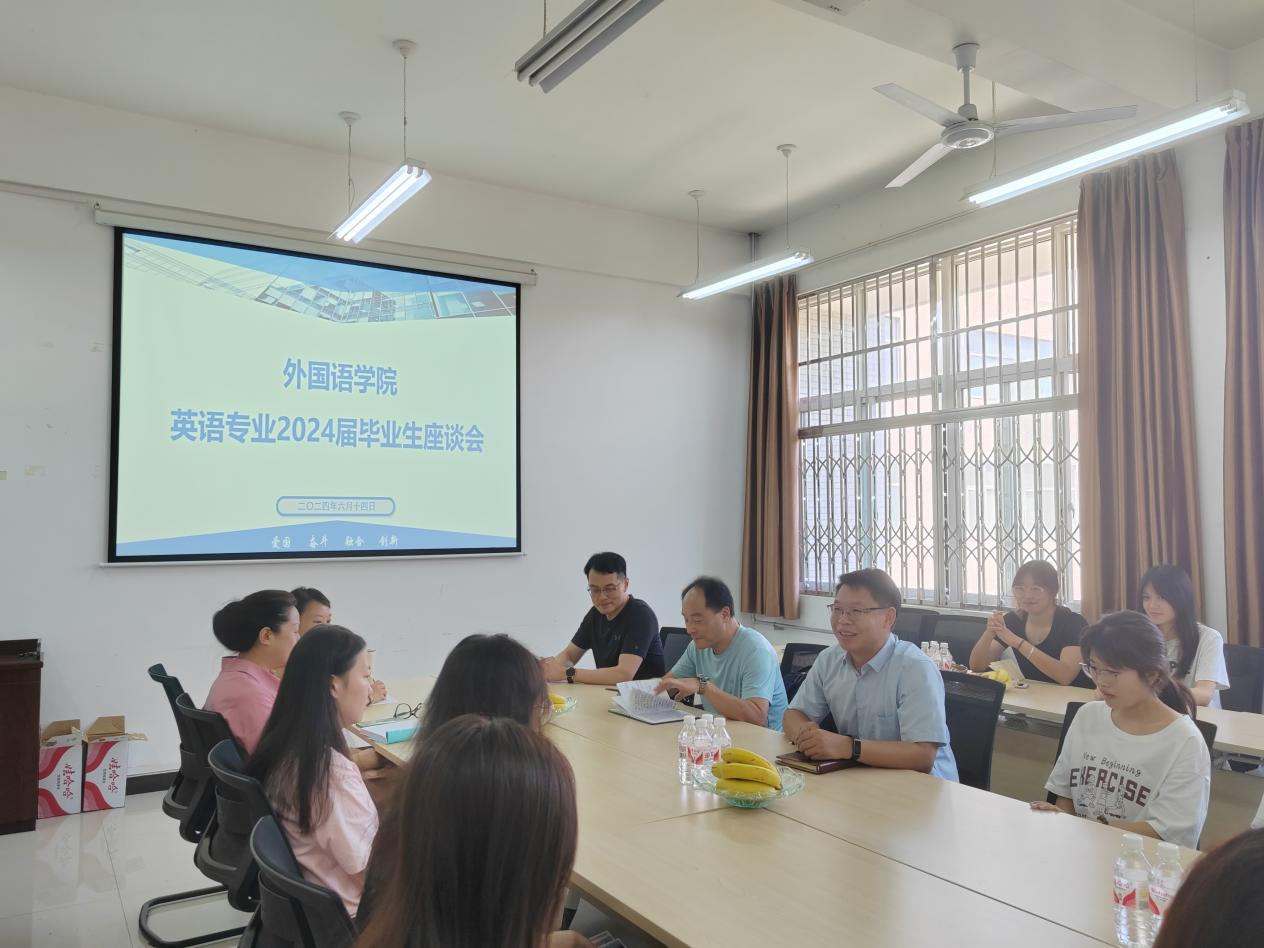 为进一步促进学院发展,提高学院人才培养质量,根据2024届毕业生“毕业季”相关活动的安排,外国语学院于6月12日-14日在崇文楼314分专业召开毕业生代表座谈会。学院党委副书记王业青,副院长陈武,英语系主任钟泽波,俄语系主任张艳,翻译系主任秦艳霞,各系部教师代表、毕业班辅导员及各专业毕业生代表参加座谈会。