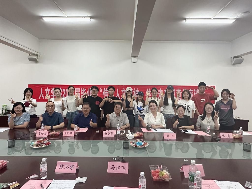 为全面了解毕业生的思想动态,听取毕业生对学院发展的意见建议,做好毕业生关怀,6月14日上午,人文学院在鄠邑校区行政楼203会议室召开了“传承人文精神、共话未来篇章”2024届优秀毕业生座谈会。会议由人文学院党委副书记盛丹主持,学院党委书记余小勇、副院长方松林、设计系主任曹盼宫、新闻系主任方亭、学工办主任付强、毕业生辅导员樊煜及优秀毕业生代表参加此次座谈会。