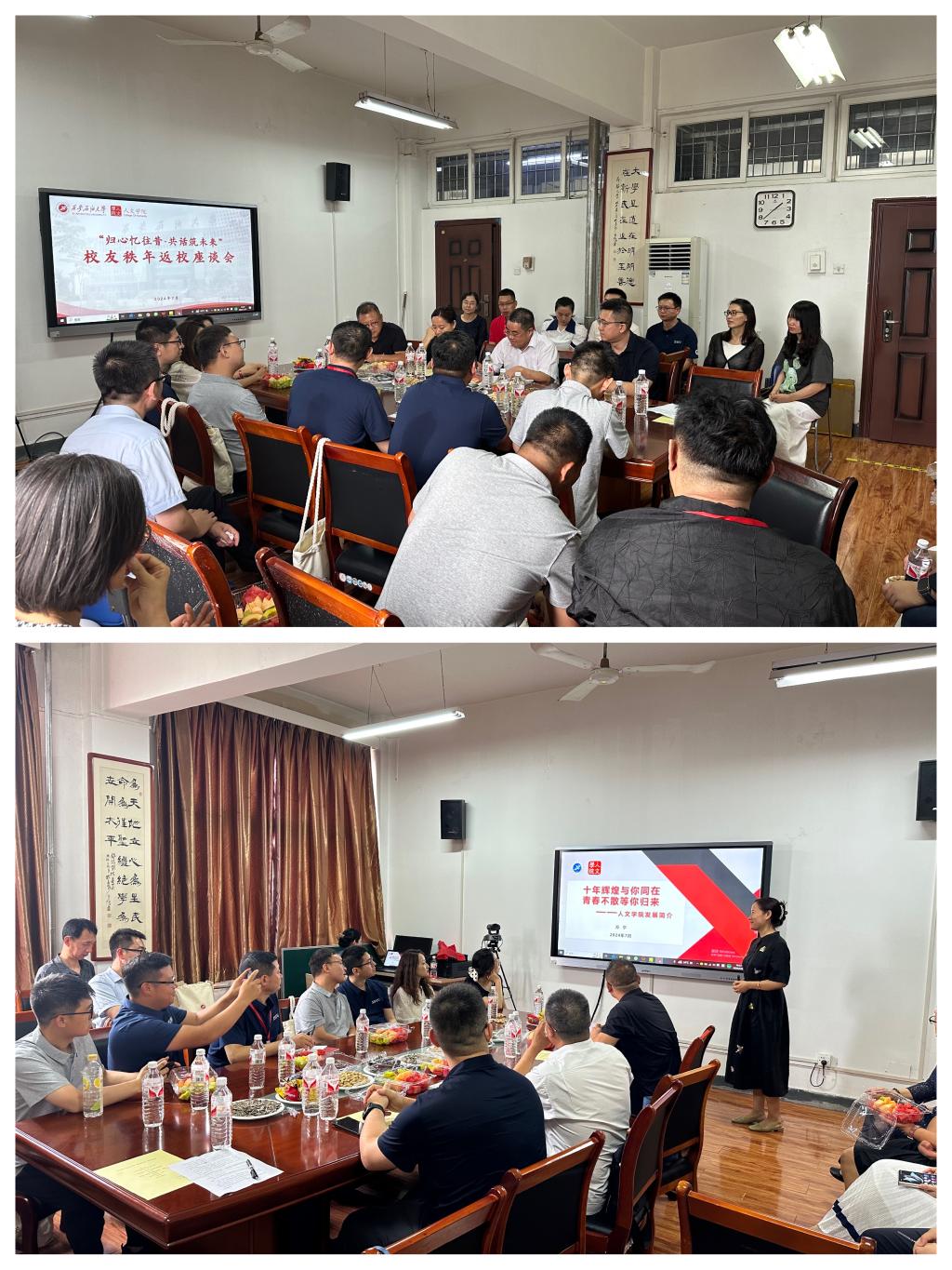 7月27日,人文学院迎来了“十年辉煌与你同在 青春不散等你归来”2024校友秩年返校系列活动,二十余位来自五湖四海的校友重返母校,共赴这场跨越时光的盛宴。学院对此次活动给予高度重视,院领导余小勇、方亭、盛丹、方松林、兰昆悉数出席,各部门教师代表积极参加活动。
