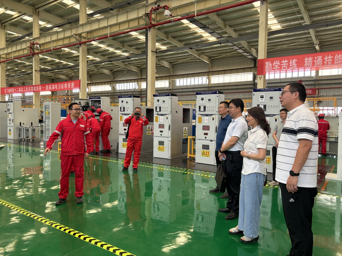 8月5日下午,我院一行人在玉门油田公司新能源事业部相关负责人的陪同下一起走访了玉门油田培训基地,双方就学生实习实训、校企培训合作等事宜进行了深入交流。8月6日,william一行走访了中国石油玉门东300MW光伏电站、玉门油田水电厂绿氢制氢站、中国石油第一个电化学储能电站——玉门油田200兆瓦光伏并网电站、中国石油第一个国网系统外新能源计量中心——国家能源计量中心(电力)酒泉分中心、玉门油田第一座太阳能综合利用试点示范项目——老君庙采油厂太阳能综合利用试点示范项目等单位,双方就玉门油田新能源发展需求、平台共建和技术攻关等方面进行了具体的交流。