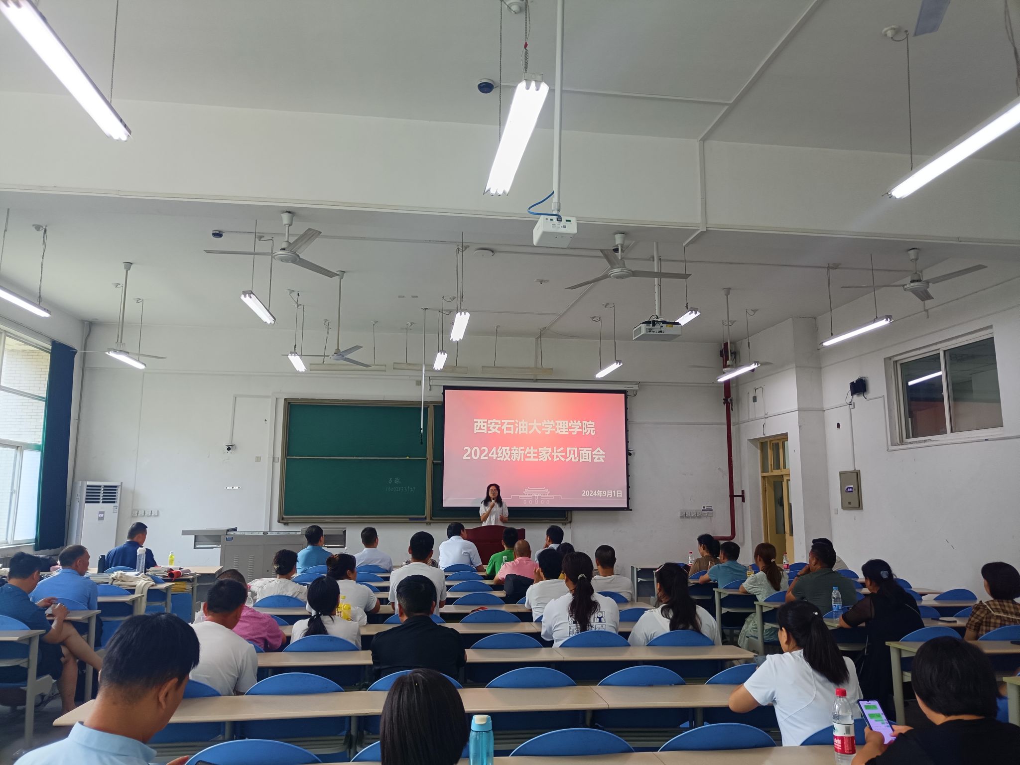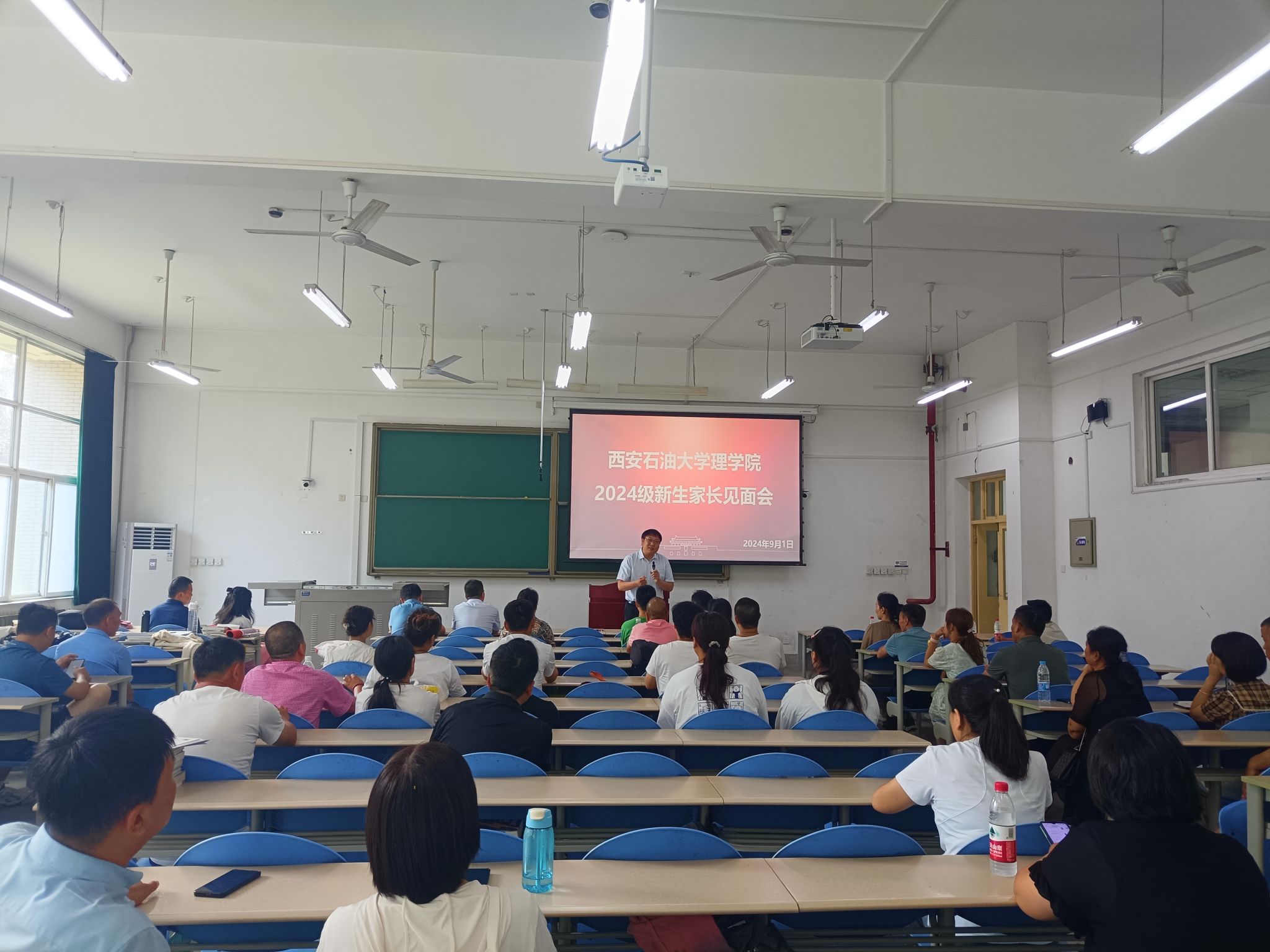 为落实立德树人根本任务,构建家校共育良好格局,形成家校齐抓共管教育合力,9月1日下午,理学院在鄠邑校区博思楼102室召开了2024级新生家长见面会,60余位新生家长参加了见面会。见面会由新生辅导员马瑶主持。