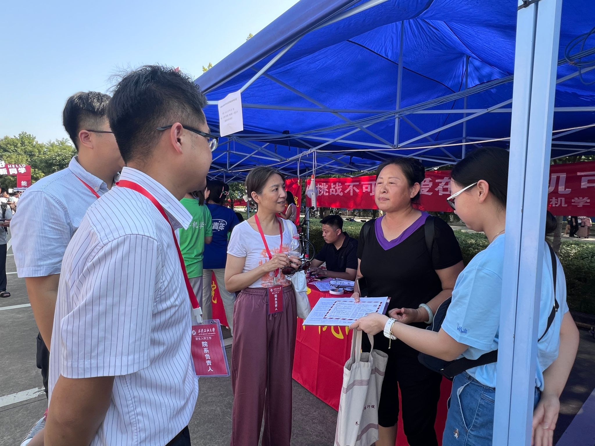 在迎新现场,团委、学生会成员和党员学生志愿者身着统一服装,穿梭在报到现场、学校大门、宿舍门口等各个角落,为新生提供行李接送、秩序维持、签领物资、校园引导等“一站式”暖心服务。迎新现场紧张有序,学生们用实际行动和热情服务彰显了石油学子的风采与担当。新生报到期间,学院领导班子成员深入迎新一线,慰问工作在一线的老师和学生志愿者,勉励全院师生共同努力,细致热情地解决新生报到过程中遇到的困难和问题,努力做到让学生满意,让家长放心。