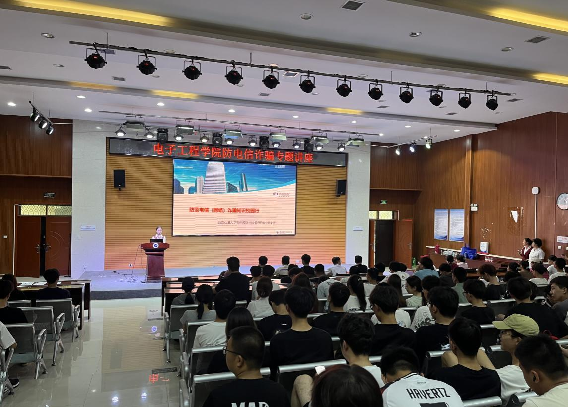 为提高学生的防骗意识和反诈能力,切实保障学生财产安全,9月4日下午,电子工程学院在鄠邑校区崇文楼就业指导中心多功能报告厅举办防范电信诈骗专题讲座。兴业银行西安小寨支行业务经理李乐颖担任主讲,学院245名本科生参加了此次讲座。专题讲座由学院2023级辅导员明望舒主持。