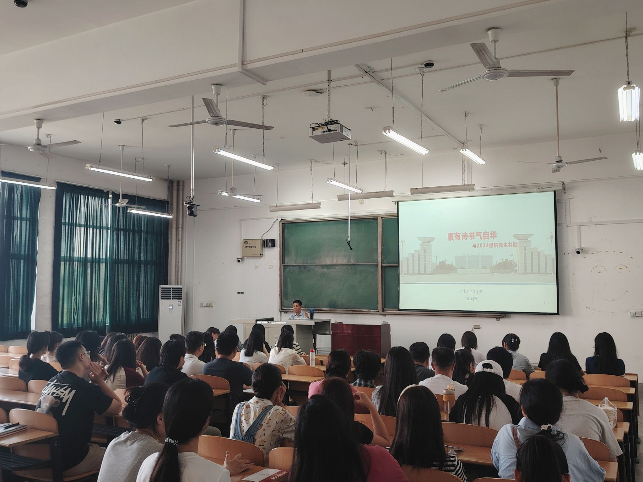 袁通路代表学院对新生表示热烈欢迎,并以“腹有诗书气自华”为题进行一场专题教育。一是解读了硕士研究生培养方案,袁通路详细介绍了研究生的培养计划和培养方案,并对硕士研究生毕业成才的几个重要关隘做了讲解,为学生们未来三年研学工作理清了头绪。袁通路希望同学们树立成人意识和思维,准确评估和认识自己,明确自己的奋斗方向,顺利完成学业,丰富自己,成长自己。二是分享了自己参加工作以后的认识和感悟。提出了研究生阶段需要完成的人生四个转变,希望大家要重视、热爱、传承中华文化,从文化中汲取营养;学好写好用好文字,在传统古籍和名家名言中感悟做人道理。最后,袁通路要求同学们做一个政治上、思想上、行动上完全合格的研究生,希望大家能在运动和读书中感悟思辨,做好学问,成长为更优秀的人才。