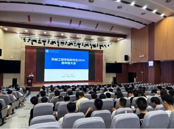 雨霁云开初晴日,盼得朝晖照新来。9月9日下午16点,在新学期开学之际,为帮助新同学适应学校学术环境,清晰了解学院规章制度、学科内容、研究要求,科研方向和资源支持等,机械工程学院在图书馆弘石报告厅召开2024级硕士研究生入学教育大会,此次会议旨在促进学生熟悉学校生活与学科内容,为新学期的学习生活奠定坚实的基础。机械工程学院副院长崔璐教授出席会议并作“工业文明载体,未来创新之舟——探索动力与机械之魅力”的“研究生第一课”报告,学院2024级硕士研究生150人全部参加会议。会议由学管办主任、2024级硕士研究生辅导员王璟主持。