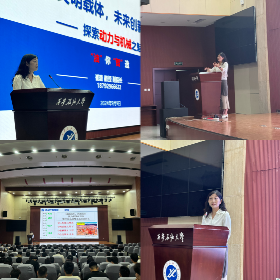 在报告中,崔璐教授以“依托石油、立足陕西、面向西北”的学校历史沿革和“因油而生,因油而兴”的学院发展定位为切入点,详细介绍了机械工程学院的专业设置和五大科研方向。她以生动形象的语言,为学生们描绘了学科内容和研究方向,使学生们对学院的科研领域有了更加清晰的了解。