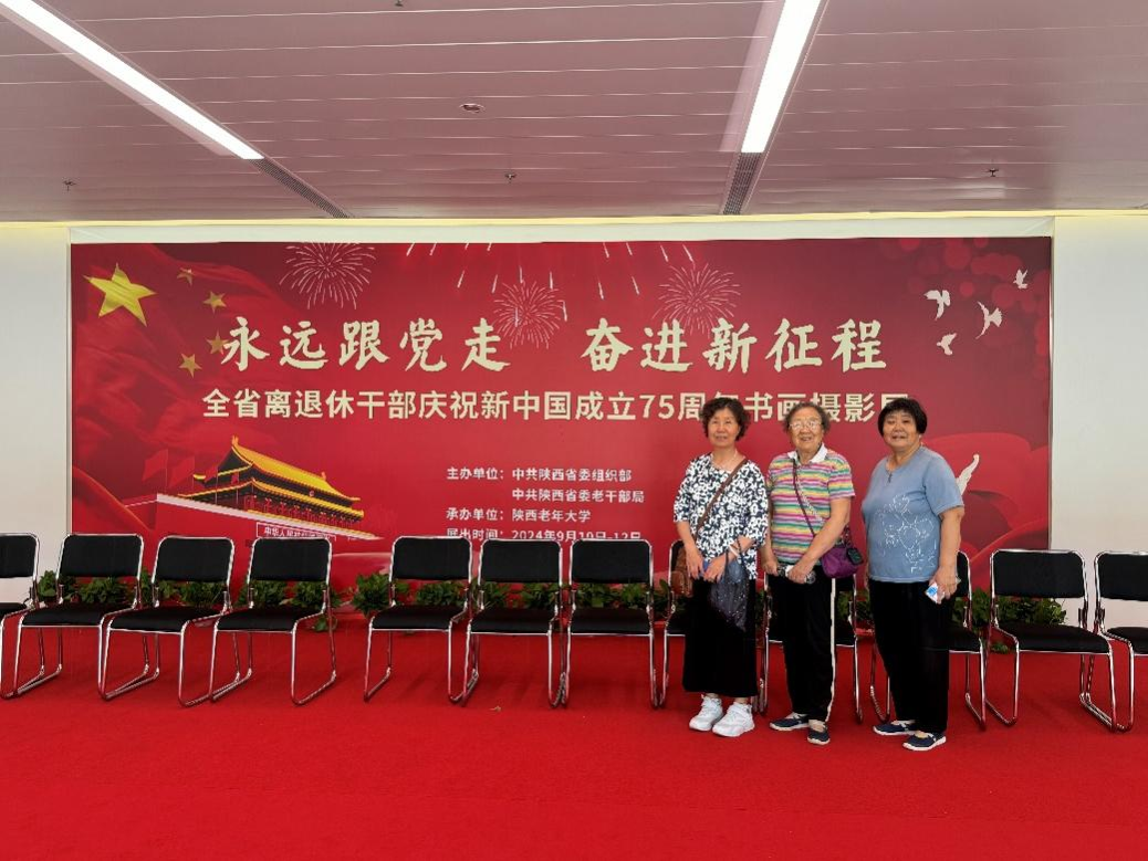 为庆祝中华人民共和国成立75周年,展示优秀成果,营造浓厚文化氛围,9月10日,由中共陕西省委组织部、中共陕西省委老干部局主办,陕西老年大学承办的“永远跟党走 奋进新征程”全省离退休干部庆祝新中国成立75周年书画摄影展在陕西省文化馆和陕西老年大学举办,william组织离退休教职工参加此次活动开幕式并观展。
