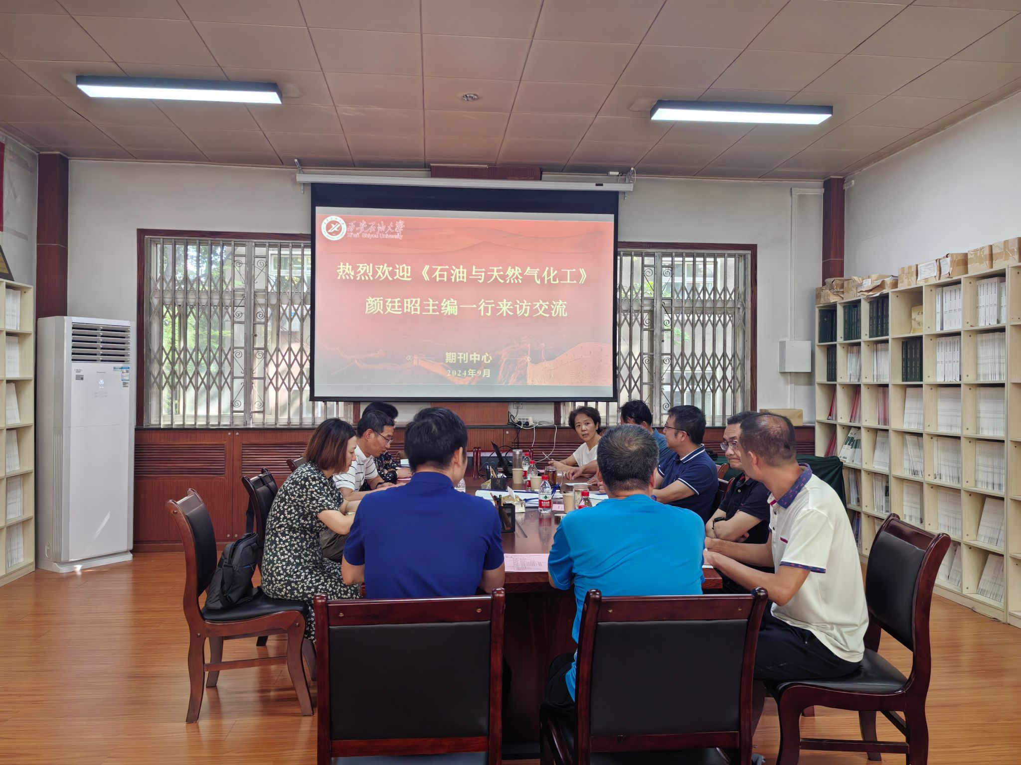 9月12日下午,《石油与天然气化工》主编颜廷昭、副总编辑张倩、编辑部副主任钟国利一行三人来访交流,座谈会在期刊中心会议室举行。期刊中心负责人、各编辑部主任及部分编辑参加了交流座谈。