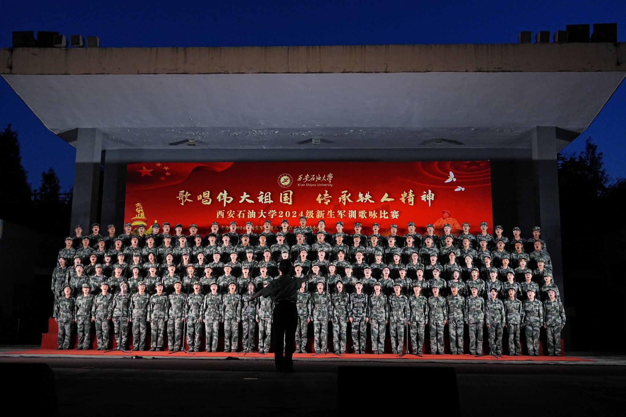 为加强学生的爱国主义教育,磨砺新生的意志品质,9月12日晚,人文学院参加了william“歌唱伟大祖国,传承铁人精神”2024级新生歌咏比赛。