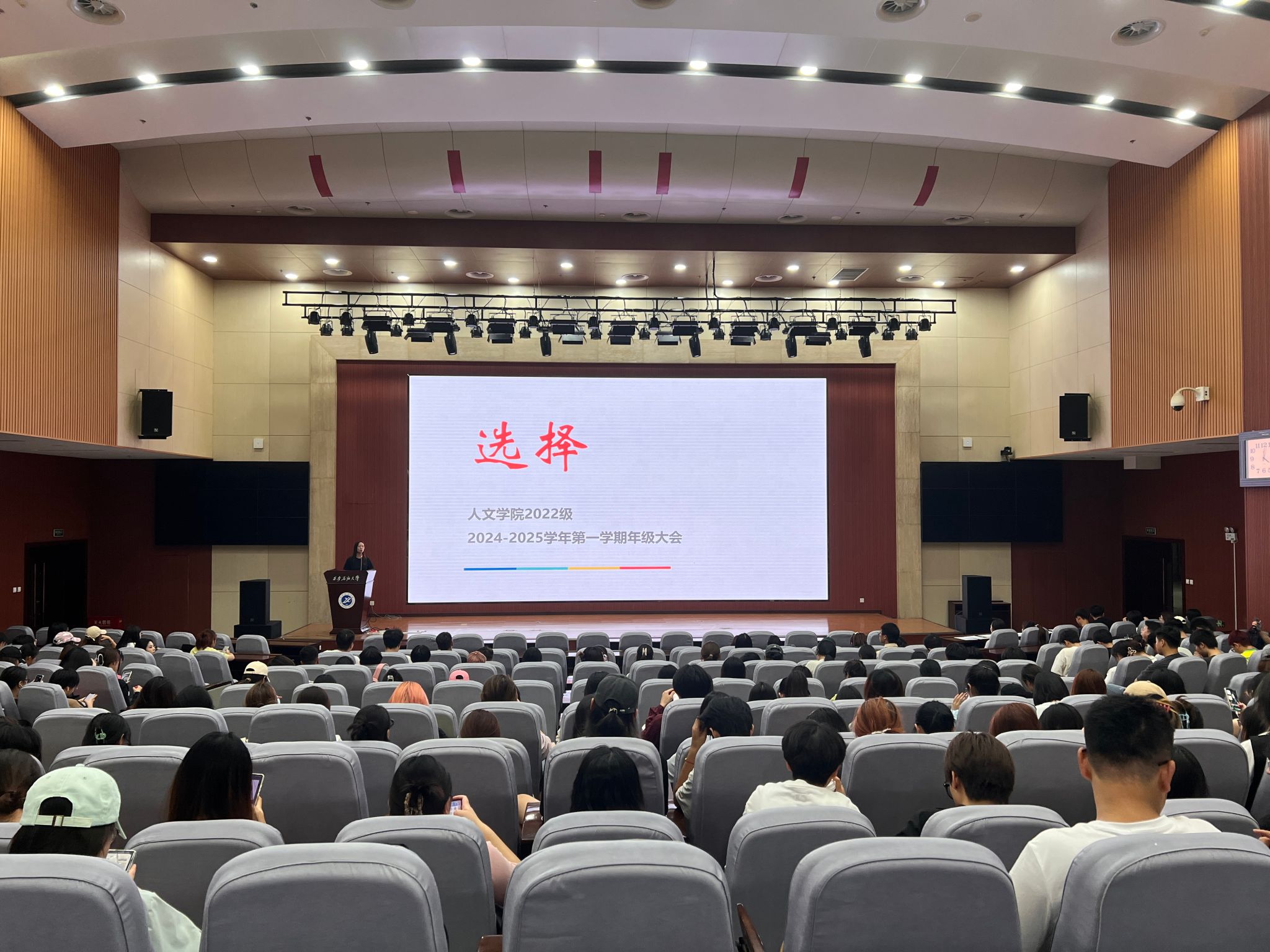 为强化学风建设,帮助同学们回顾学习历程,发现问题不足,明确学习目标,制定行动计划,进一步做好学生思政教育和日常管理工作。9月18日下午,人文学院2022级、2023级在鄠邑校区弘石报告厅分别召开年级大会。大会由2022级辅导员范嘉欣,2023级辅导员王凯杰主持,2022级、2023级全体学生参加。