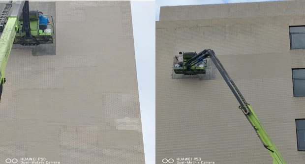 7.楼宇外立面改造。为改善校园环境并消除建筑物外墙瓷砖脱落伤人损物等安全隐患,后勤处启动鄠邑校区东区食堂外立面喷涂真石漆试点项目。该项目不仅可以减少后期的运营成本,还可以节能减排,创建一个集美观、安全、可持续为一体的学习和工作环境。由于鄠邑校区院系楼外立面瓷片脱落较多,严重影响楼宇外立面美观环境,对此,后勤处对院系楼的外立面重新做了仿真维修。本次共维修面积约240平方米。