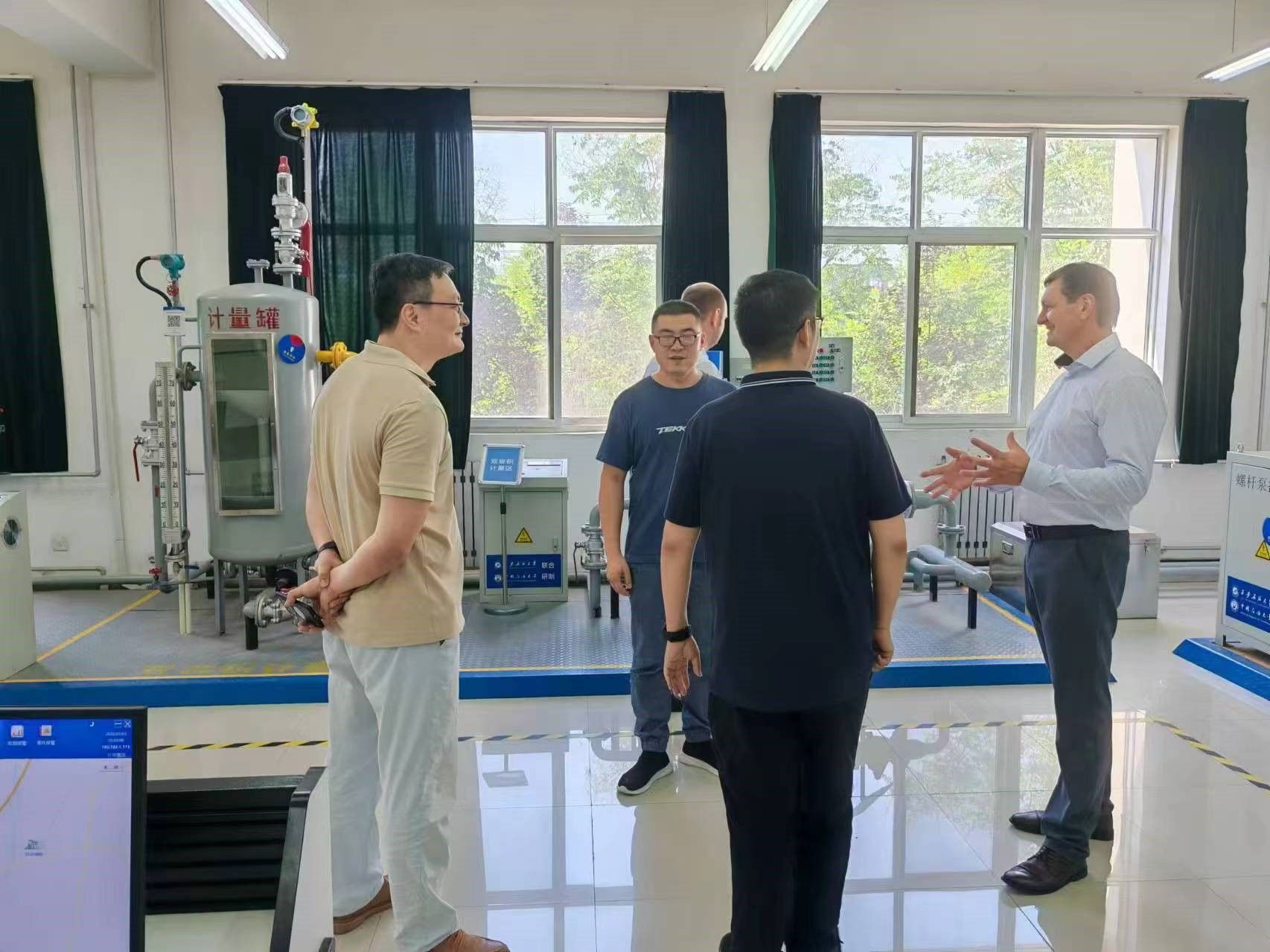 3.完成白俄罗斯石油学科设计研究院院长一行及铁一中国际学校教师代表参观接待工作。白俄罗斯国家石油公司石油科学研究设计院院长亚历山大·齐布兰科夫、地质开发部副主任阿列克谢·库德拉舒一行2人8月13日莅临william鄠邑校区石油石化虚拟仿真实验教学中心参观指导。