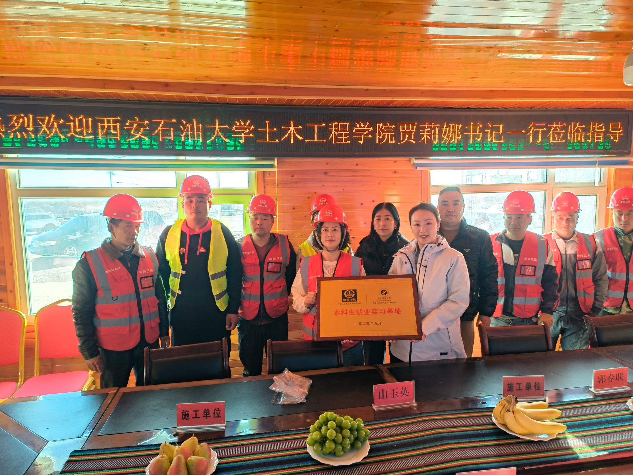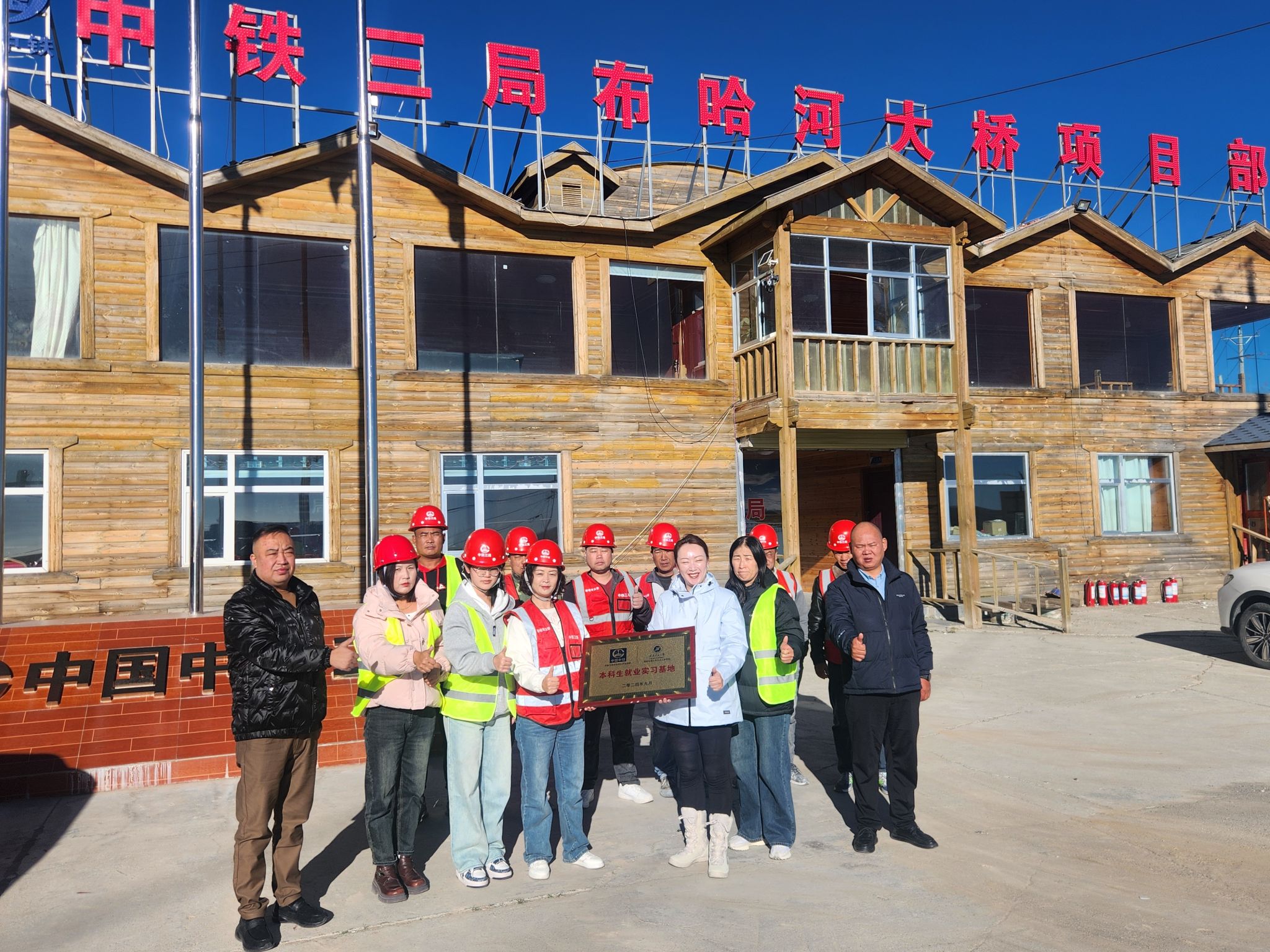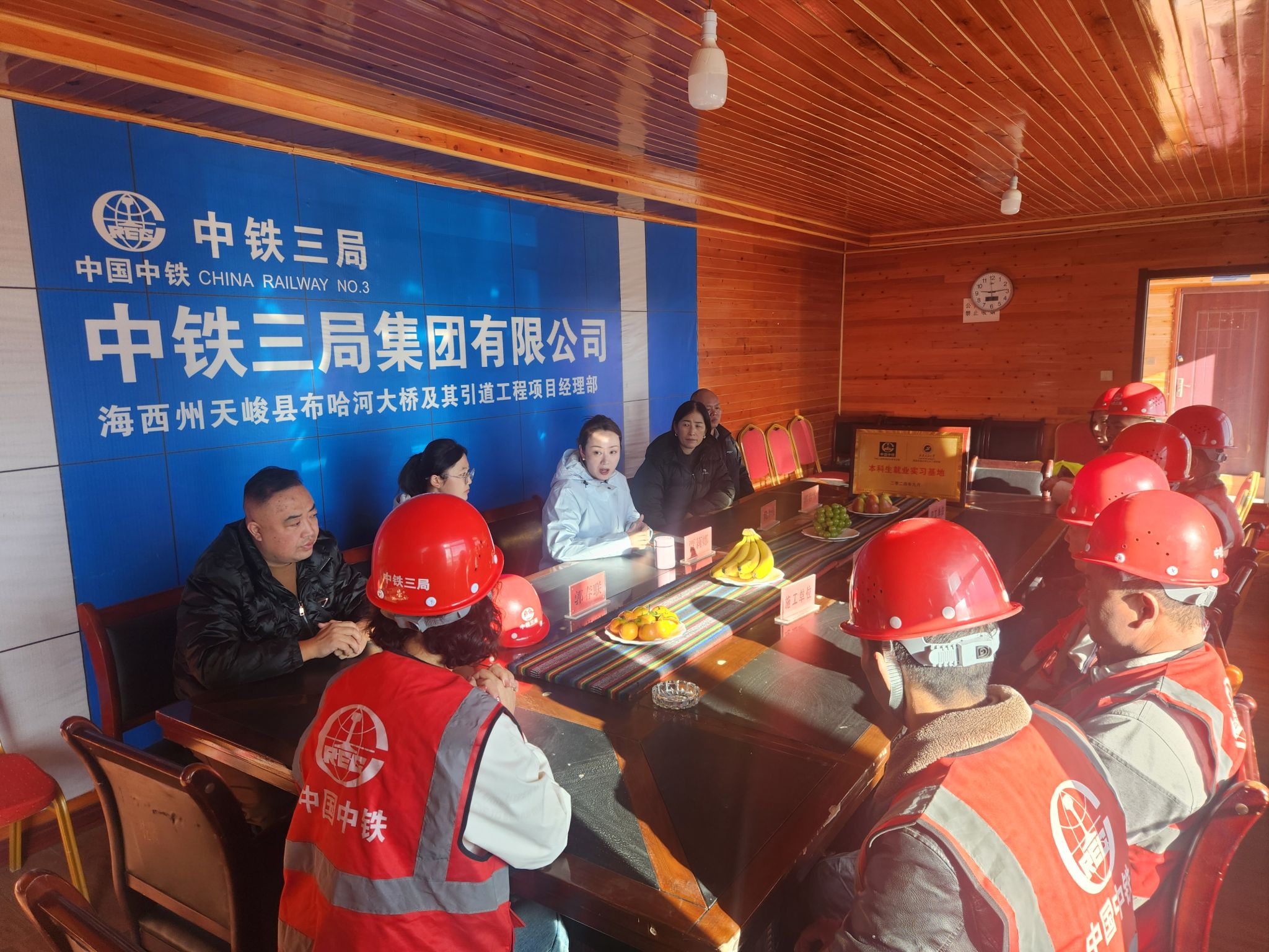 按照学院的年度工作计划,积极有序推进校企合作。10月1日,土木工程学院党委书记、副院长贾莉娜一行4人赴青海省海西州中铁三局集团布哈河大桥项目部(以下简称项目部)开展“本科生就业实习基地”授牌仪式。双方进行了交流座谈,项目经理山玉英,项目技术负责人赖泽伟等相关科室负责人参加了座谈会。座谈会由赖泽伟主持。