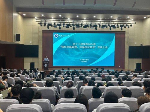 为帮助2024级学生学习理解学生管理相关制度,教育引导学生们养成良好的学习生活习惯,10月9日下午,电子工程学院在鄠邑校区弘石报告厅召开“强化学籍管理、明确校规校纪”教育会。学院党委副书记芮执根、教学办公室主任张漪、2024级辅导员沈轩羽、帕丽达·托乎提及2024级全体学生参加会议。