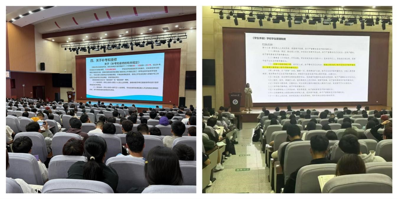 会上,张漪依据《william威廉中文官网全日制本科生学籍管理规定》,分别从学籍管理、课程考核、成绩记载、课程修读、学业预警与留级、学籍异动等多方面进行了详细的讲解,引导学生正确对待学业,合理规划大学生涯。沈轩羽就《学生手册》中的各项规章制度进行了详细解读,重点介绍了校规校纪、资助政策、评奖评优等内容,引导新生把外在的约束内化为自觉的行为,鼓励同学们规范言行,向上向好发展。
