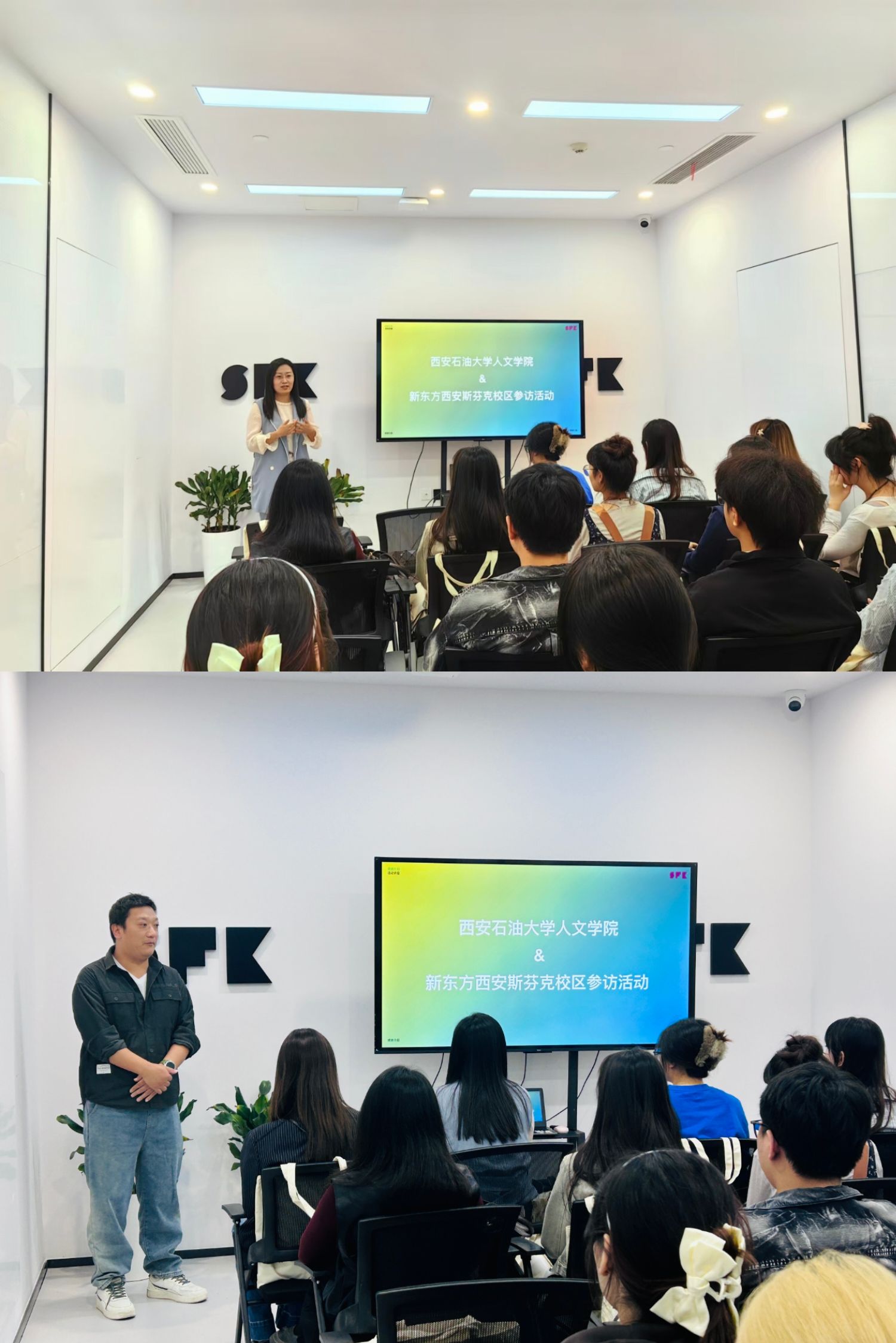 在参观前,付强先对前程龟兔信息咨询有限公司和新东方斯芬克机构为我院学生提供本次参观表示感谢,她希望同学们在参观中能够了解掌握艺术类学生出国留学的相关信息,并且通过本次参观进一步明确专业学习方向、拓宽就业视野。前程龟兔信息咨询有限公司崔琎涛总监在讲话中表示,今后会继续加强和新东方斯芬克机构沟通合作,帮助更多艺术类有出国出境深造意愿的学子圆梦。