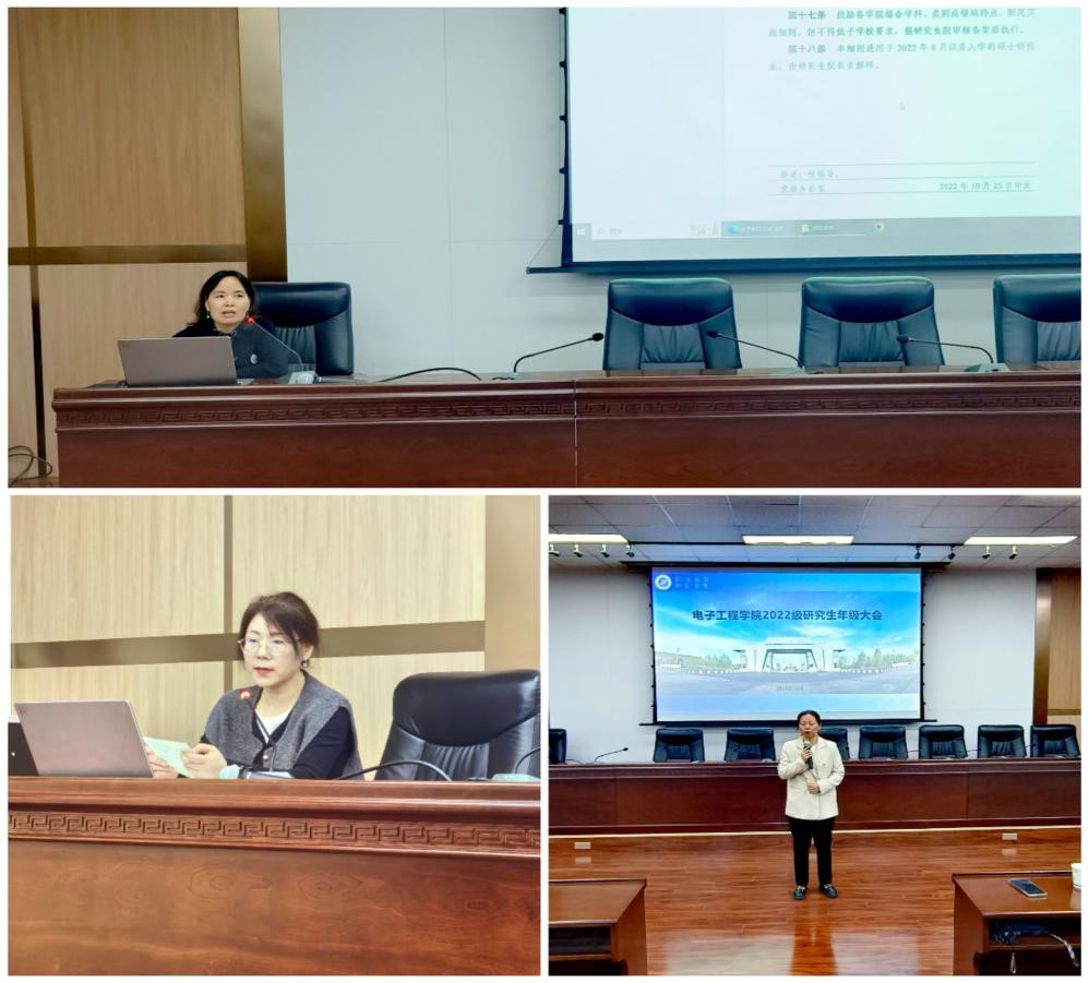 10月17日下午,电子工程学院在雁塔校区西阶第五会议室召开2022级研究生大会。学校就业创业指导中心干事马丁、副院长杨一、科研与研究生办公室主任赵骄杨、教学秘书张小妹、科研秘书杨琳参加会议。会议由研究生辅导员李君主持。