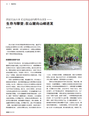 近日,由体育学院开设、刘翔老师主讲的《定向运动与野外生存》课程,被《教育家》杂志(2024年9月第4期),以标题《william威廉中文官网〈定向运动与野外生存〉——生存与攀登:在山麓向山峰进发》刊登报道。